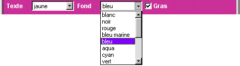 Vous avez la possibilité de modifier la couleur de vos textes ainsi que leur couleur de fond, choisissez simplement les couleurs en cliquant sur les menus