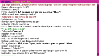 Dialoguer sur un salon est la manière la plus simple pour discuter. Pour vous exprimer, il suffit de taper dans la ligne du bas ce que vous voulez dire, puis d'appuyer sur la touche " entrée " du clavier. Votre message est envoyé à tous les participants dans leur fenêtre principale sous la forme.