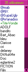 toute une liste de pseudos. Certains sont précédés d'un @ , d'autres sont verts